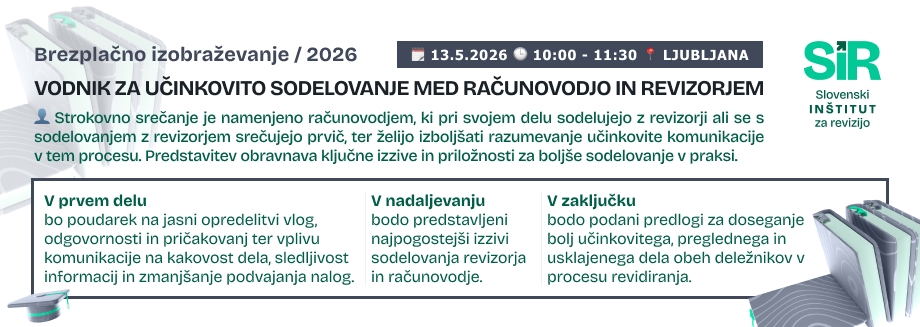 V kolikor menite, da predlog ZOP-1 zahteva kakršnekoli spremembe oziroma dopolnitve, ali ste v preteklosti v zvezi z njegovim izvajanjem naleteli na kakršnekoli težave, ki bi jih bilo smiselno nasloviti, nas prosim o tem obvestite na elektronski naslov info@si-revizija.si, in sicer do petka, 1. maja 2026.